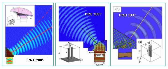 我们从开始利用SRR来产生磁共振逐步向结构的简单化微型化、提高响应频率发展,从理论上实现了利用简单的金属纳米棒对产生的负折射效应,并且通过三根棒之间的共振耦合实现了宽频段、全角度的负折射现象。