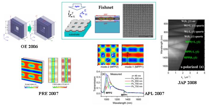 金属/介质穿孔多层结构(后也被称作“鱼网结构”)由于在光波段表现出负折射现象二受到广泛关注。我们详细探讨了改结构中的多种磁响应模式、互相耦合效应,提出了“磁等离极化激元”的概念,并研究了它的色散性质。
