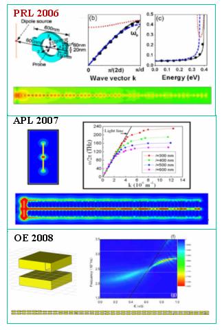 我们的理论研究也是从长波段的SRR开始,逐渐拓展的红外波段的金属三明治结构,并且通过结构的改变,实现了波导色散和能带性质的调控。
